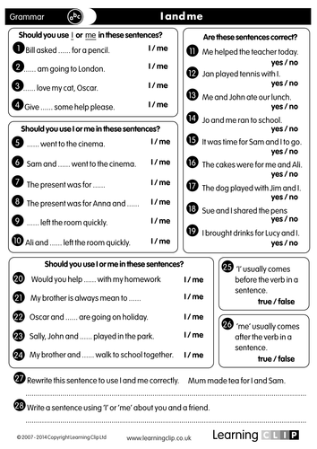 40 Ks2 Free Grammar And Punctuation Worksheets For Print Whiteboard And Tablets I And Me Teaching Resources